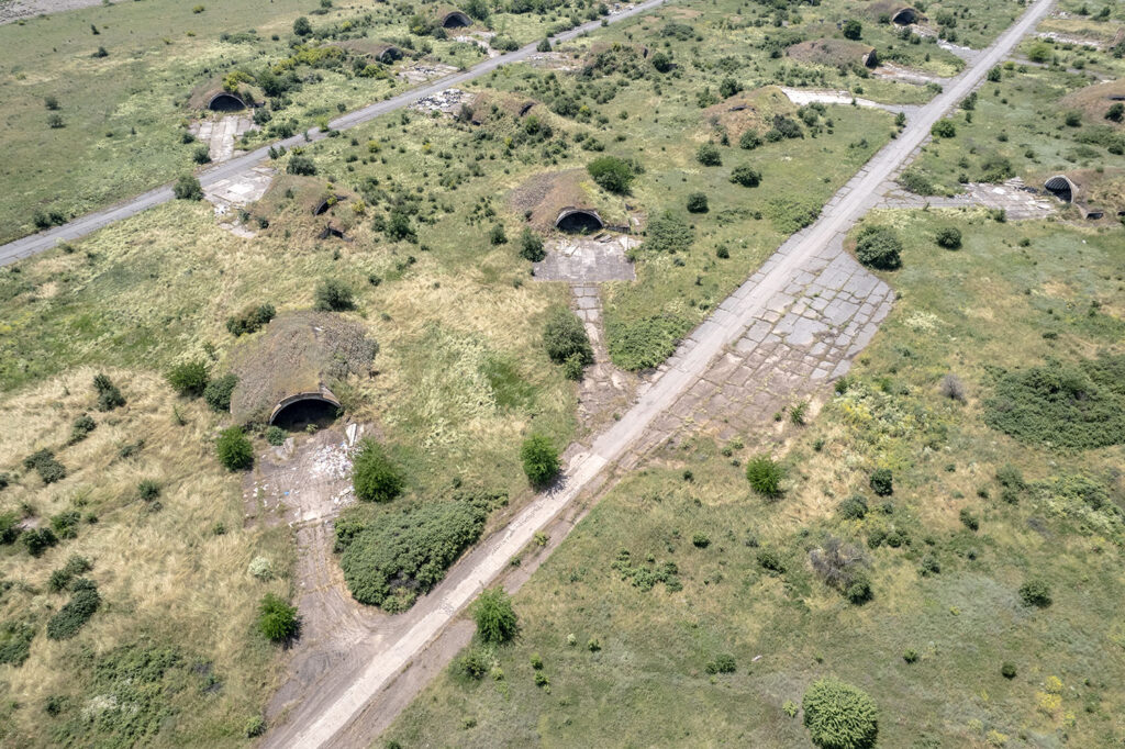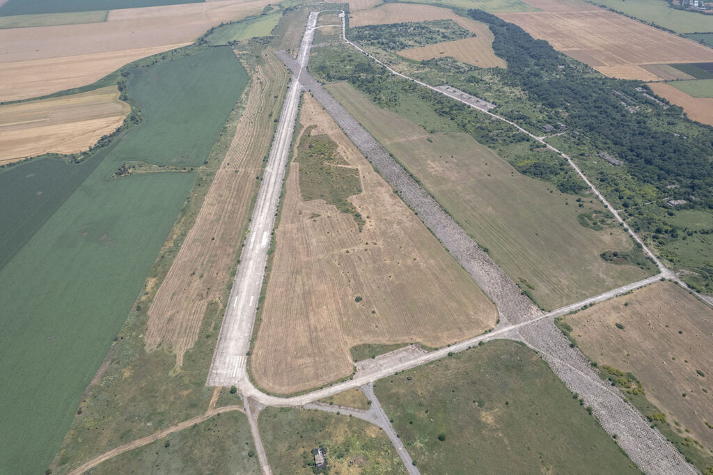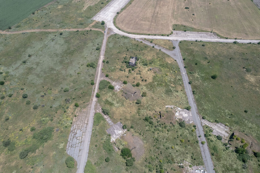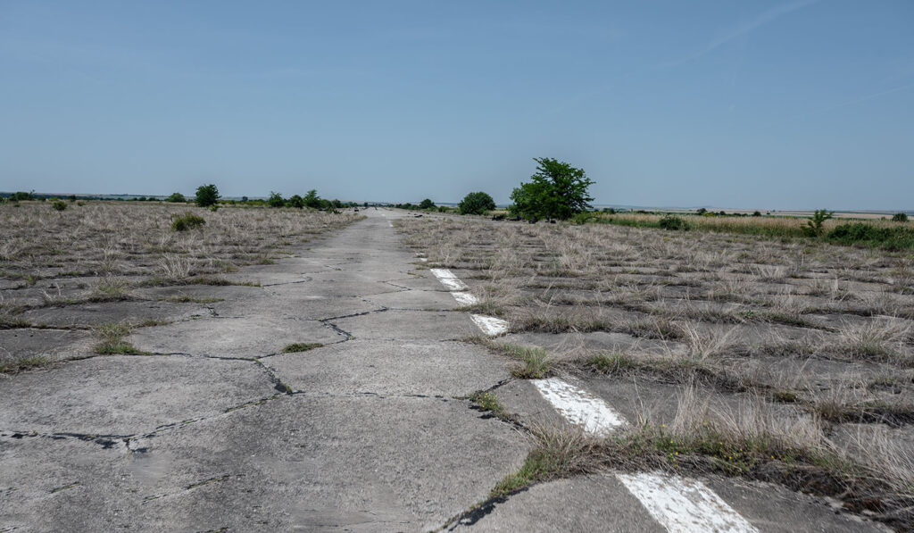 this is a former airbase in the Warzaw pact. My guess is that it has been abandoned for very long. Farmers still taking care of cutting grass around it.
